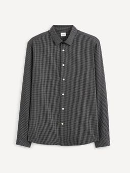 Bavlněná košile s jemným kostkovaným vzorem. Moderní krátký límeček. Zapínání na knoflíčky. Dlouhé rukávy s manžetou. Rovný střih košile.