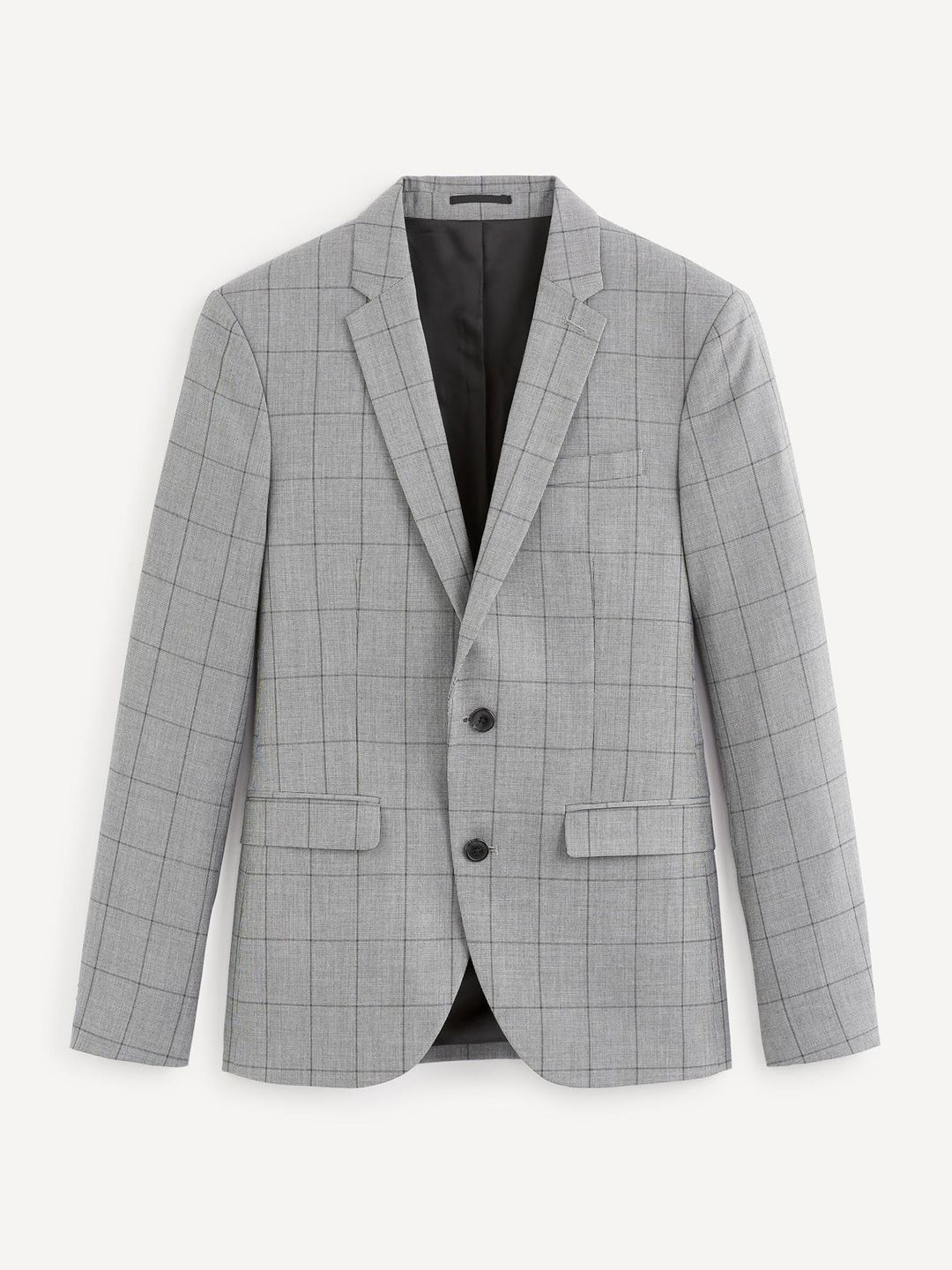Sako s kostkovaným vzorem. Klasický střih se zapínáním na dva knoflíky. Klopy a přední rovné kapsy s klopami. Malá kapsička na ozdobný kapesníček. Sako lze prát.