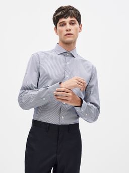 Bavlněná košile s dlouhým rukávem v regular střihu. Opravdu snadné žehlení díky úpravě "easy iron". Úzký proužek a krátký límeček. Zapínání na knoflíčky. Rukávy s manžetou.