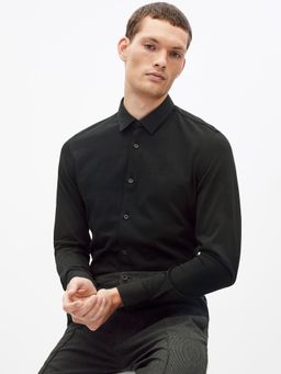 Bavlněná košile s dlouhým rukávem. Pružný úplet piké. Krátký límeček a zapínání na knoflíčky. Černá barva.