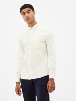 Čistě bavlněná košile s dlouhým rukávem. Krátký límeček na zapínání. Na hrudi malá kapsička. Rovný střih.