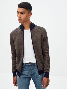 Pletený kardigan s vysokým límcem a zapínáním na zip. Šikmé kapsy a pružné náplety.