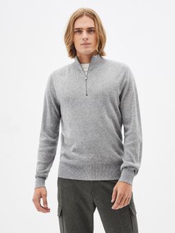Pletený svetr s vysokým límcem na zip. Světle šedý melír. Příjemný materiál s příměsí vlny.