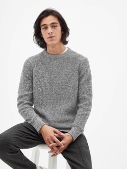 Pletený svetr s kulatým výstřihem. Žebrovaný úplet. Příjemný materiál.