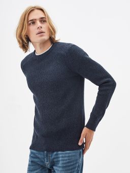 Pletený svetr s kulatým výstřihem. Žebrovaný úplet. Příjemný materiál.