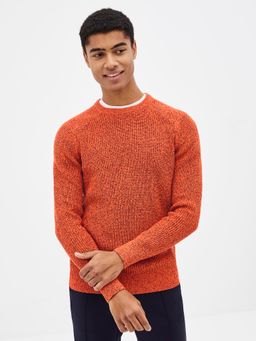 Pletený svetr s kulatým výstřihem. Žebrovaný vícebarevný úplet. Příjemný materiál.