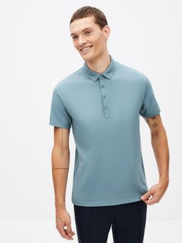 Jednobarevné polo tričko. Límeček ke krku. Zapínání na čtyři knoflíčky. Krátký rukáv a příjemný materiál s elastanem.