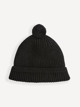 Pletená čepice s bambulí. Ohrnutý lem. Příjemný materiál s příměsí vlny.
