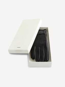 Kožené prstové rukavice v dárkové krabičce. Z jedné strany hladká useň a z druhé semiš. V černé barvě.