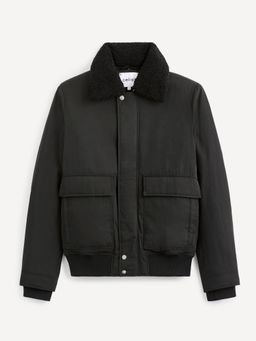 Bunda v leteckém stylu. Zateplena límecem z umělého beránka. Límec lze sundat. Zapínání na zip a krycí klopa na patentky. Přední kapsy s klopou. Široké a pružné náplety.