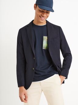 Sako klasického střihu. Klopy, přední kapsy a kapsička na kapesníček. Záplaty na loktech. Příjemný materiál s elastanem.