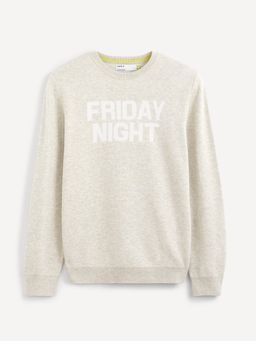 Jednobarevný svetr s nápisem FRIDAY NIGHT na hrudi. Kulatý výstřih a dlouhé rukávy. Příjemný materiál.
