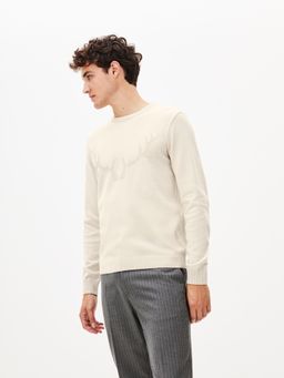 Pánský svetr s plastickým vzorem na hrudí. Svetr má kulatý výstřih a pružné náplety. Příjemný materiál. Svetr skvěle doplní džíny a prošívaná bunda nebo vesta.