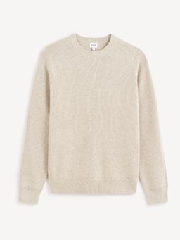 Svetr s drobným vzorem. Střih přes hlavu a dlouhé raglánové rukávy s pružným lemem. Kulatý výstřih ke krku. Svetr se hodí k džínům i elegantním kalhotám.