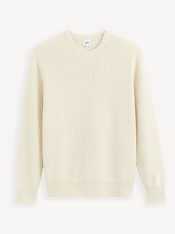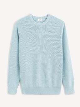 Svetr s kulatým výstřihem a drobnou strukturou. Příjemný bavlněný materiál. Svetr doplň prošívanou vestou v kontrastní barvě a získáš trendy outfit.