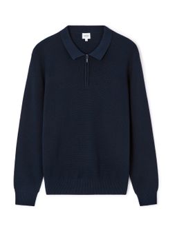 Tento tmavě modrý polo svetr s límečkem na zip je perfektní volba pro muže, který hledá kombinaci elegance a pohodlí. Měkký mikro vaflový úplet zajišťuje lehkost a texturovaný efekt, zatímco dlouhé rukávy a praktický polo límeček na zip dodávají svetrům moderní nádech. Bez potisku a s viditelnou pletenou strukturou je ideální pro každodenní nošení, ať už jdeš do kanceláře, nebo trávíš čas ve městě.
