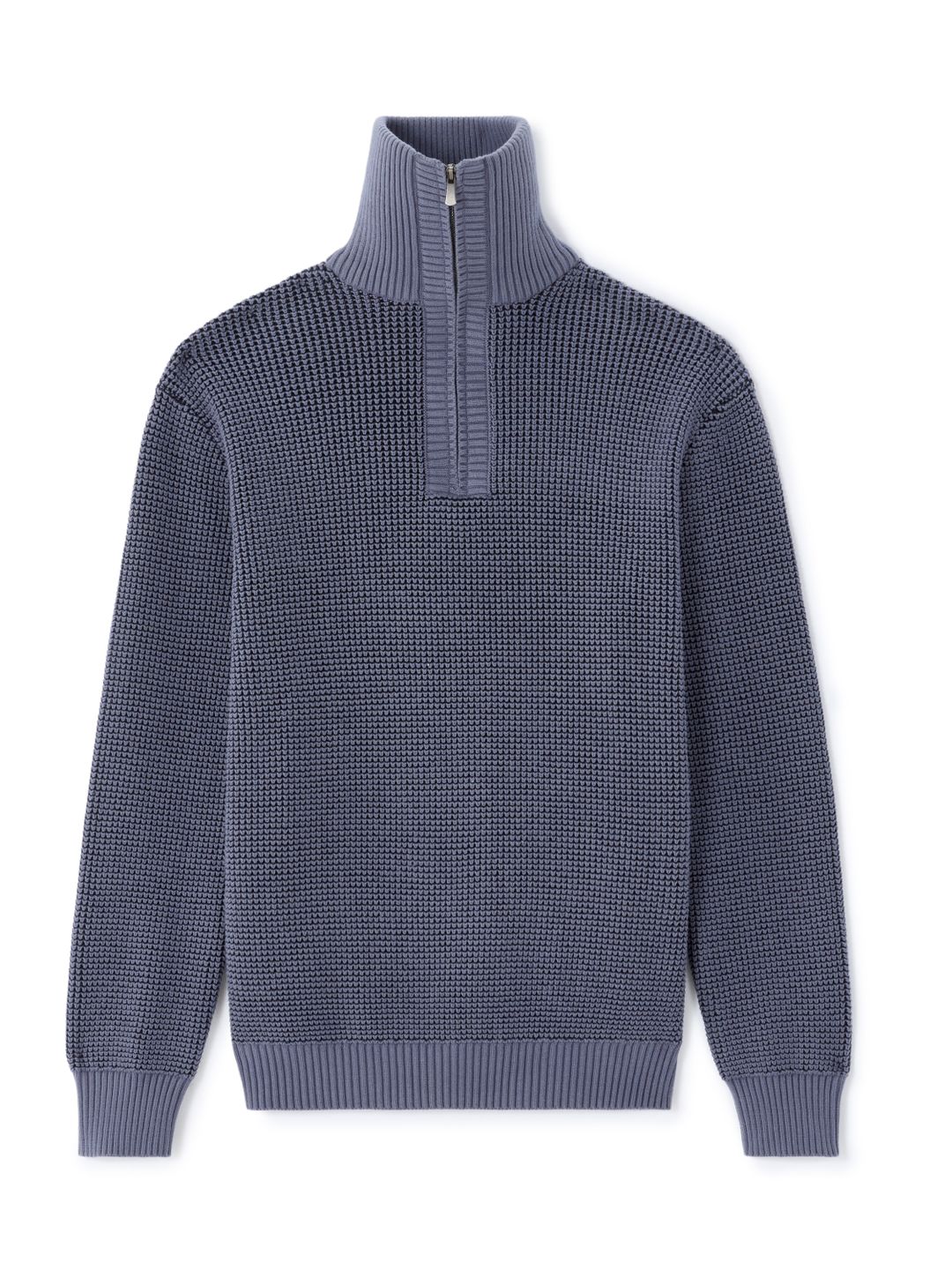 Zkus něco nového a vsaď na pohodlí s tímto pánským svetrem z vaflového úpletu. Tmavě modrá barva, příjemný pletený materiál, volnější střih a měkký dotek ti zajistí uvolněný styl na každý den. Zapínání na zip a směs bavlny z něj dělají praktický a příjemný kousek, po kterém sáhneš kdykoli.
