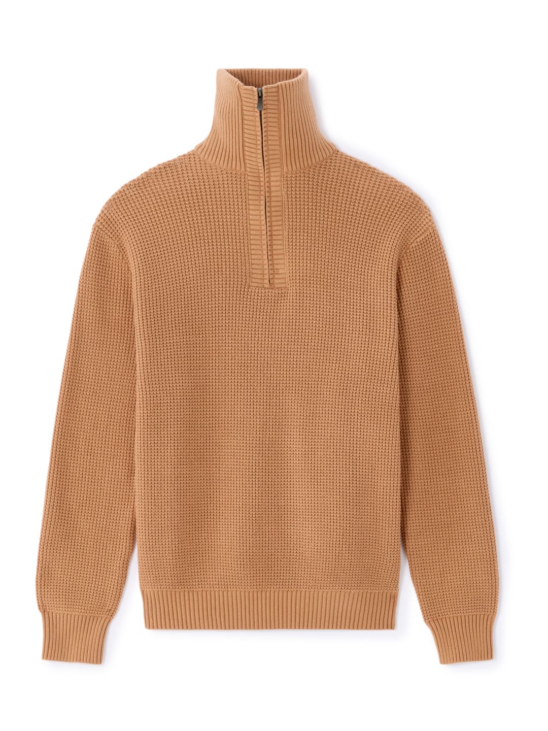 Zkus něco nového a vsaď na pohodlí s tímto pánským svetrem z vaflového úpletu. Oranžová barva, příjemný pletený materiál, volnější střih a měkký dotek ti zajistí uvolněný styl na každý den. Zapínání na zip a směs bavlny z něj dělají praktický a příjemný kousek, po kterém sáhneš kdykoli.