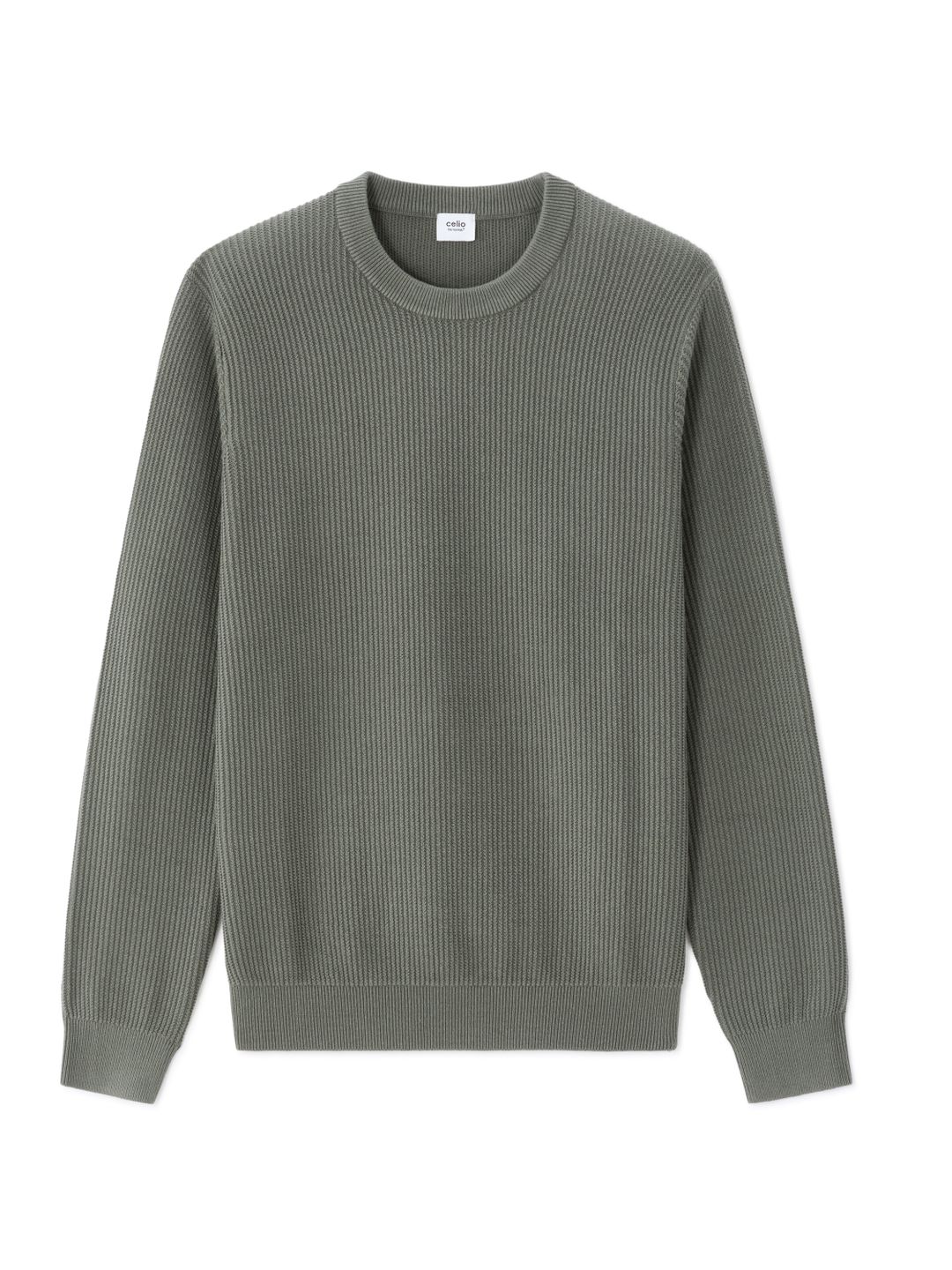 Svetr, který kombinuje pohodlí a styl. Khaki svetr s kulatým výstřihem, měkký na dotek, s pleteným vzorem rybí kosti a regular střihem z 100% bavlny je ideální pro moderní vzhled každý den.