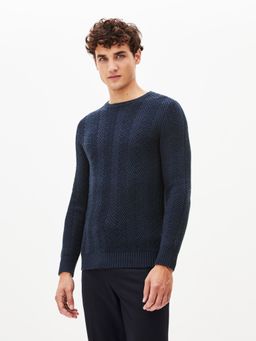 Pletený svetr se vzorem. Kulatý výstřih ke krku. Jednobarevný.