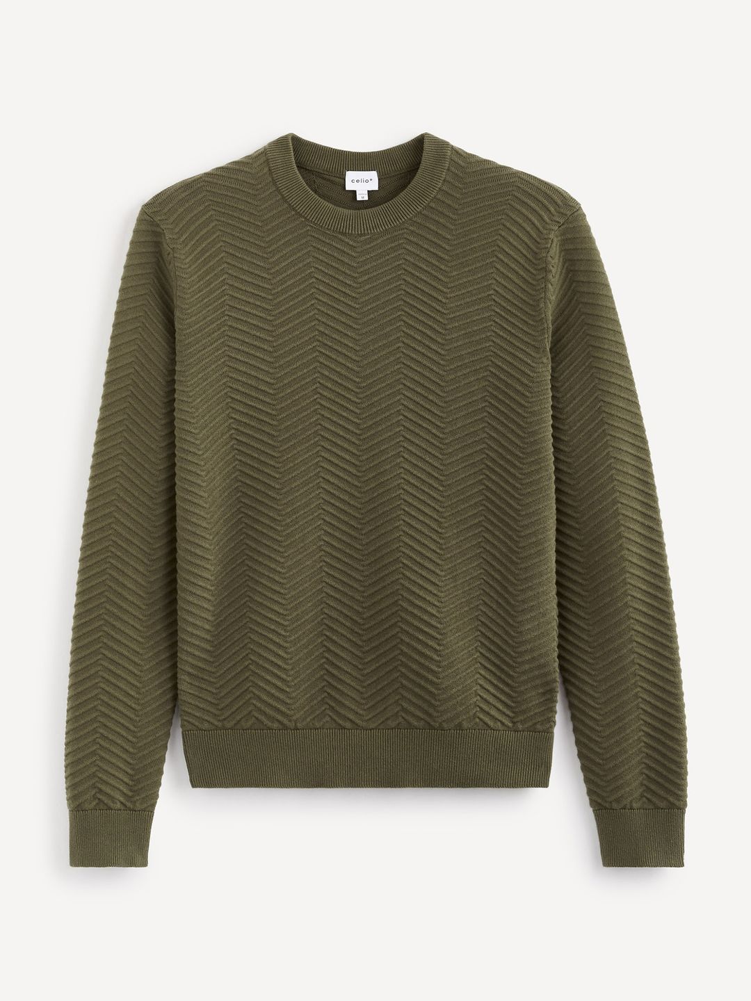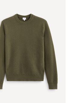 Jednobarevný svetr s drobnou strukturou. Kulatý výstřih ke krku. Dlouhé rukávy s náplety. 100% bavlna.