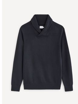 Hladce pletený svetr s šálovým límcem ke krku. Přiléhavý střih. Pružné náplety. Příjemný materiál.