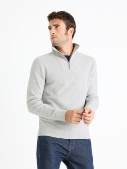 Jednobarevný svetr se stojáčkem a zapínáním na zip. Dlouhé rukávy a pružné žebrované lemy. Příjemný materiál.