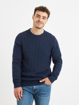 Svetr s kulatým výstřihem. Copánkový vzor. Příjemný materiál s příměsí vlny.