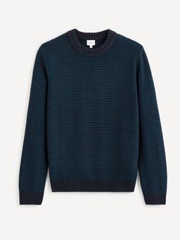 Pletený svetr s kulatým výstřihem. Dvoubarevný s jemným vzorem.