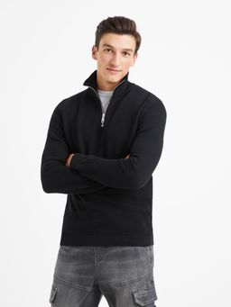Jednobarevný svetr s límcem na zip. Hladce pletený ze 100% bavlny. Příjemný a lehce pružný úplet.