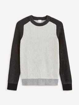 Svetr s kulatým výstřihem. Rukávy v kontrastní barvě. Příjemný materiál s příměsí vlny.