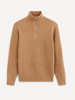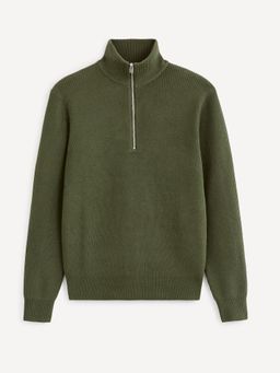 Jednobarevný pletený svetr s vysokým límcem na zip. Příjemný materiál.