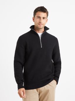 Jednobarevný pletený svetr s vysokým límcem na zip. Příjemný materiál.