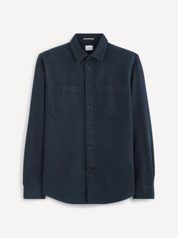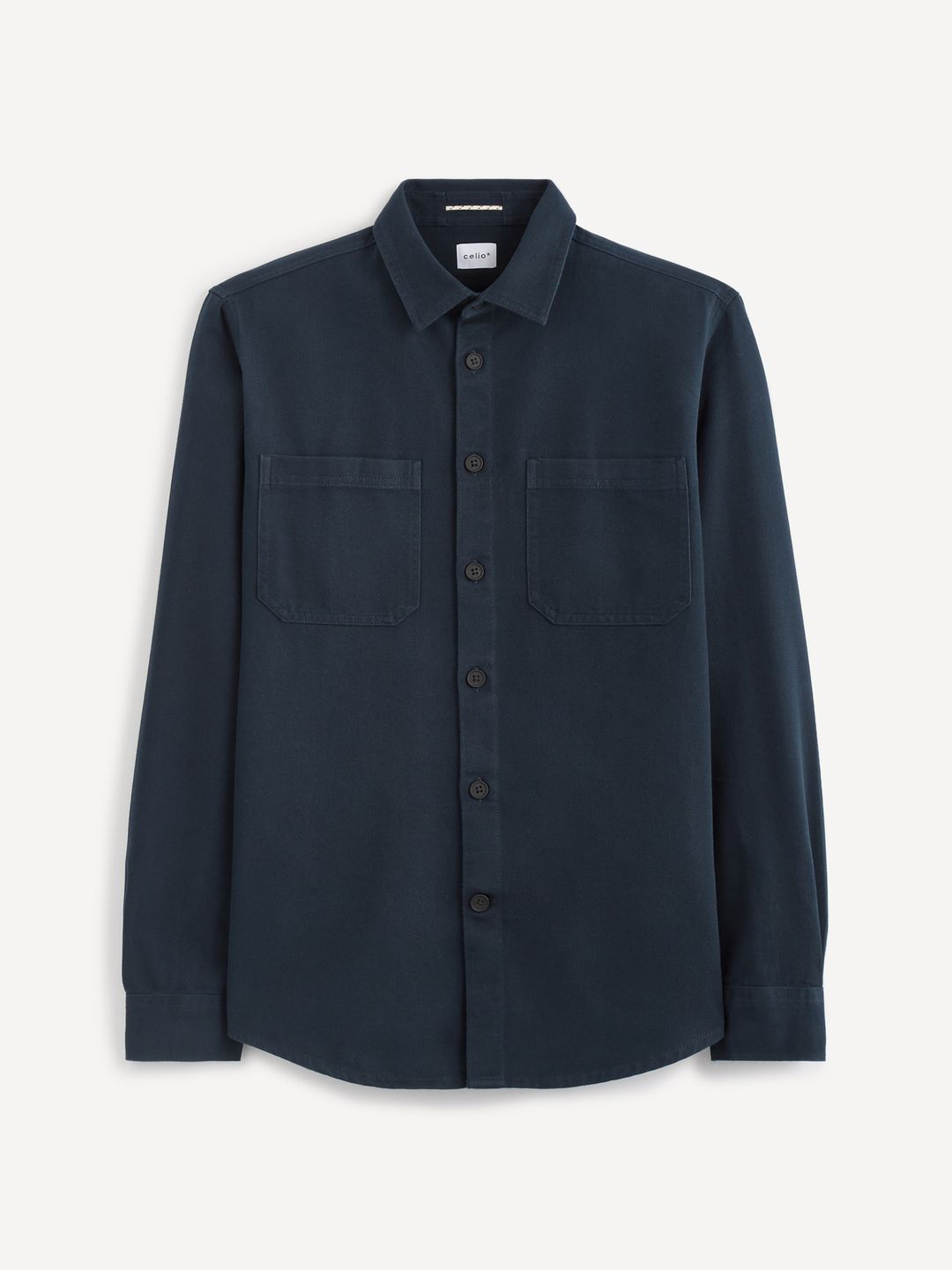 Svrchní košile ve střihu regular. Límeček u krku a zapínání na knoflíčky. Na hrudi dvě kapsičky. Dlouhé rukávy s manžetou.