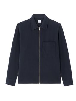 Tahle tmavě modrá svrchní košile ve střihu overshirt se snadno nosí a dobře kombinuje. Má dlouhé rukávy, klasický francouzský límec a jemně strukturovaný povrch, který jí dodává charakter. Našitá kapsa na hrudi a praktické zapínání na zip.