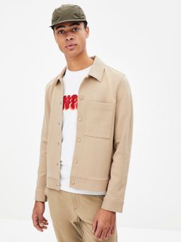 Svrchní košile. Zapíná se na knoflíčky. U krku límeček. Na hrudi našitá velká kapsa. Příjemný materiál s elastanem.