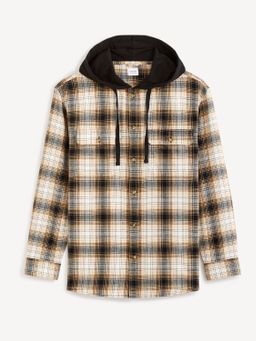 Svrchní košile s kapucí. Kostkovaná košile se zapínáním na knoflíčky. Jednobarevná kapuce se stahovací šňůrkou. Dvě náprsní kapsy s klopami. Dlouhé rukávy s manžetou.
