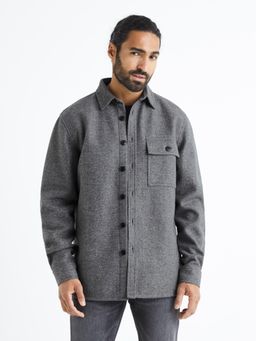 Svrchní košile s dlouhým rukávem. Klasický límeček. Zapínání na knoflíčky. Náprsní kapsička s klopou. Rovný střih. Příjemný materiál s příměsí vlny.