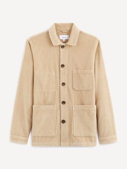 Svrchní manšestrová košile. Přední našité velké kapsy. U krku kratší límeček. Dlouhé rukávy s manžetou. Zapínání na knoflíky.