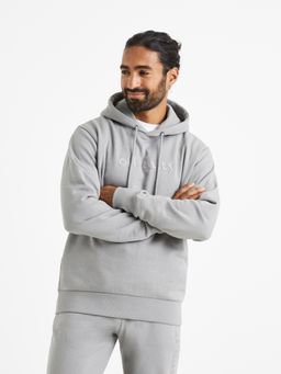 Jednobarevná mikina s kapucí. Nenápadný nápis. Kapuce se stahovací šňůrkou. Široké a pružné náplety. Bez zapínání.