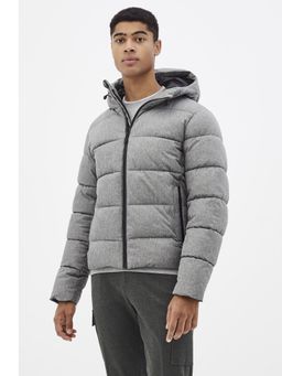 Hřejivá prošívaná bunda s kapucí. Se zapínáním na zip. Šikmé boční kapsy. Skrytá kapsa na zapínání. U krku stahovací šňůrka.
