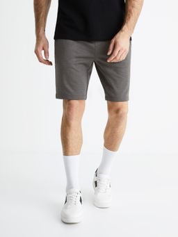 Hladké teplákové kraťasy s pružným pasem. V pase navíc stahovací šňůrka. Kraťasy jsou jednobarvené a mají šikmé boční kapsy. Příjemný materiál s elastanem v délce nad kolena.