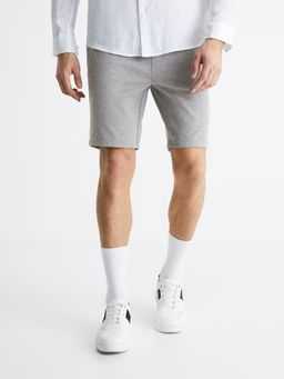 Hladké teplákové kraťasy s pružným pasem. V pase navíc stahovací šňůrka. Kraťasy jsou jednobarevné a mají šikmé boční kapsy. Příjemný materiál s elastanem a v délce nad kolena.