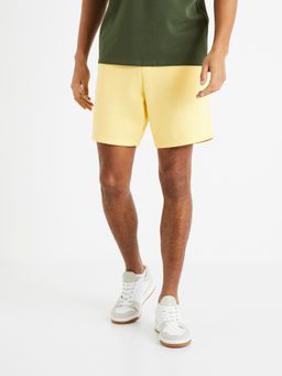 Teplákové kraťasy s pružným pasem. V pase stahovací šňůrka. Přední šikmé kapsy. Zadní našitá velká kapsa. Jednobarevné.