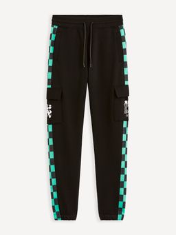 Kultovní animák Demon Slayer. Černé tepláky ze speciální kolekce Demon Slayer. Po stranách vzor zelenočerné kostky a kapsy s klopou a potiskem. Pružný pas se stahovací šňůrkou v bílé barvě. Dlouhé nohavice s pružným lemem.