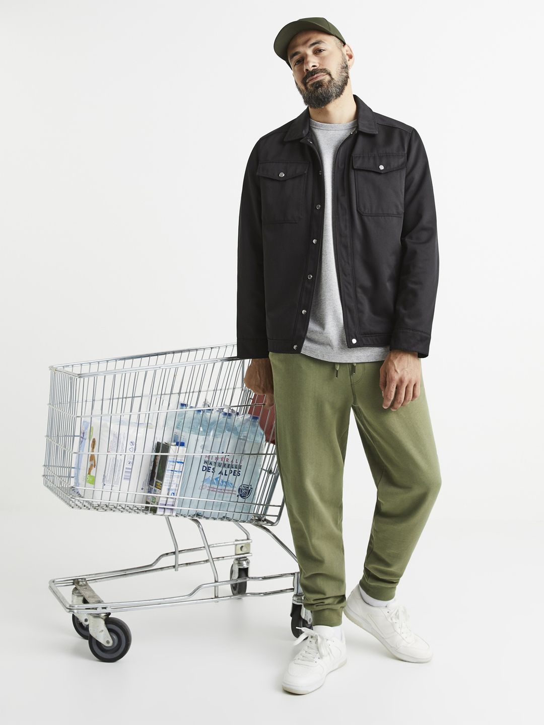Bavlněné tepláky jogging. Pružný pas se stahovací šňůrkou. Boční šikmé kapsy. Nohavice s pružným nápletem.