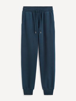 Sportovní tepláky s pružným pasem. Šikmé boční kapsy. Široké náplety. Příjemný materiál.