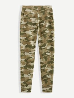 Pohodlné tepláky s maskáčovým vzorem. Šikmé boční kapsy. Široké náplety. Příjemný materiál.