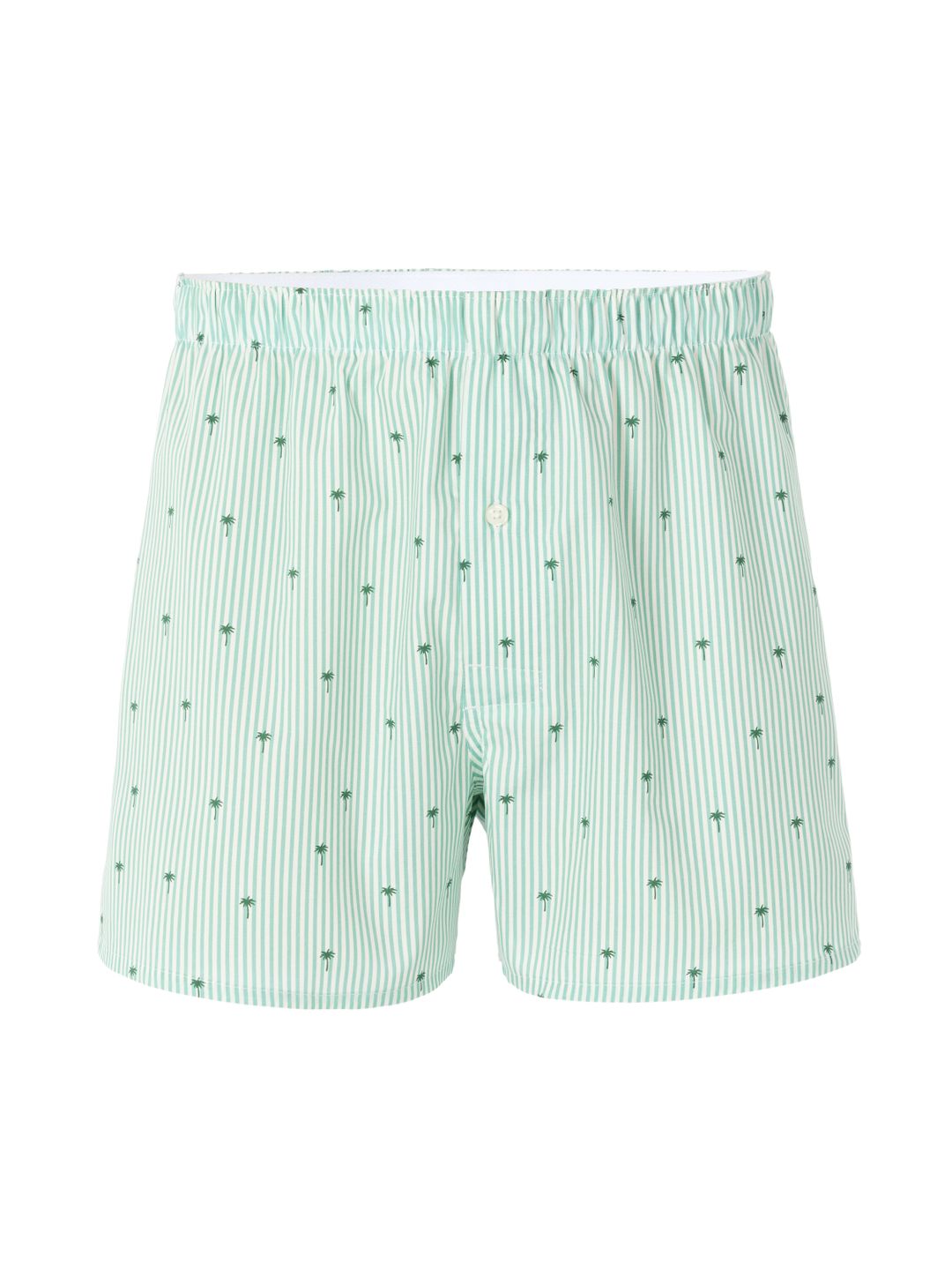 Trenýrky, které kombinují pohodlí a styl. Zelené s botanickým potiskem z 100% bavlny nabízejí příjemný pocit na těle a decentní eleganci pro muže.
