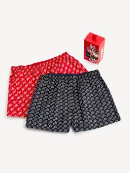 Trenýrky v dárkovém balení. V balení 2 kusy bavlněných trenýrek s pružným pasem. Různé barvy a vzory. Poklopec se zapínáním na knoflíčky. Dárková krabička s vánočním motivem a poutkem.